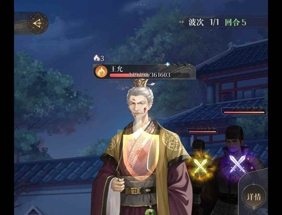 其他正常打,张鲁有大开大不用防御,5回合的时候要把小兵打死不然小兵一下就全炸没了,打到王允残血的时候张鲁只剩5%能量了很惊险的过了...