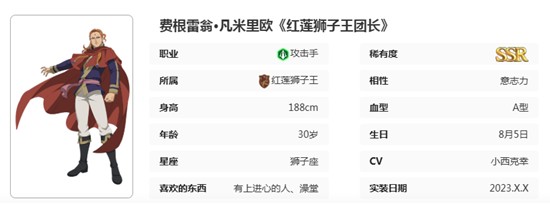黑色五叶草魔法帝之道中的法格莱恩是许多玩家关注的核心角色之一。作为红莲狮子团的团长,他不仅拥有高贵的皇族血统,更是以强大的火焰魔法和坚定的正义感著称。在黑色五叶草魔法帝之道这款游戏中,法格莱恩被设定为稀有度SSR级别的攻击手,具备出色的单体与群体输出能力。他的技能机制围绕持续伤害增益展开,能够在战斗中迅速建立优势。对于追求高爆发与战术压制的玩家来说,了解法格莱恩的技能特性至关重要。