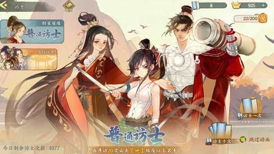 当玩家在普通访士卡池中的抽取次数累计达到200次后,可从该卡池内的地级名士中自选一名直接获取,这是普通池的重要福利之一。由于普通访士产出的名士属性随机,适合在有闲置拜帖时进行抽取,不必刻意囤积资源。只要有机会,就可以利用拜帖进行抽取,尽快触发保底机制,获取更多地级名士,为后续阵容搭配提供更多选择空间。