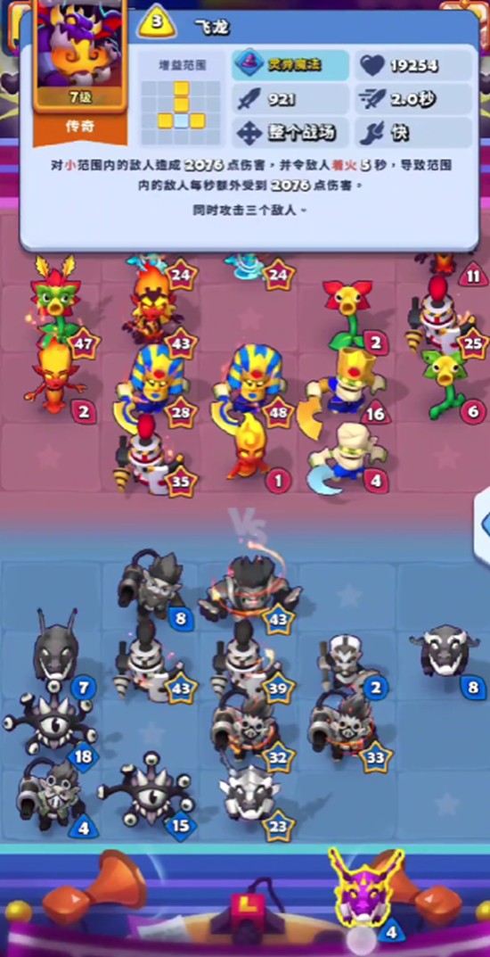 在队伍搭配方面,飞龙与同属灵异魔法系的豌豆花、祭司等角色有良好协同。这些辅助型单位能够扩散飞龙的魔法影响范围,将原本仅作用于三个目标的伤害判定扩展至十个以上敌人。此外,在部署时需注意增益角色与飞龙之间的距离,确保其处于有效增益覆盖范围内,以最大化整体输出效率。
