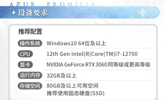 根据官方公布的PC端配置需求,蓝色星原旅谣需要大约80G的SSD存储空间,建议配备32G以上的内存以确保流畅运行。这一配置在当前同类二次元风格游戏中属于较高水平,反映出游戏在画面表现、场景细节和系统复杂度上的高投入。无缝大地图、动态天气系统、精细的角色建模与环境互动都需要强大的资源支持,因此80G的安装空间并不算夸张。对于追求高画质体验的玩家而言,预留更多存储空间会更为稳妥。