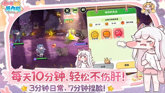 嘟嘟脸恶作剧是一款以轻量化体验为核心的移动端卡牌RPG游戏。游戏主打“每天3分钟日常+7分钟捏脸”的设计理念,让玩家在碎片化时间中也能轻松享受养成乐趣。整体风格偏向无厘头与甜系结合,剧情围绕甜食叛变展开,设定脑洞大开,比如用蛋糕劝降叛军、为抢糖果爆发王国动乱等桥段层出不穷。这种反传统的叙事方式为嘟嘟脸恶作剧注入了强烈的个性色彩,使其在众多RPG手游中脱颖而出。