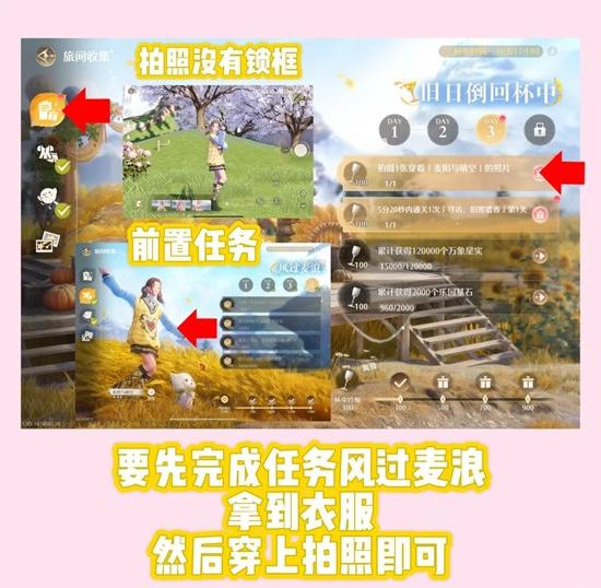 首先要完成前置任务,拿到衣服,然后穿上拍照即可,没有锁框~