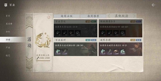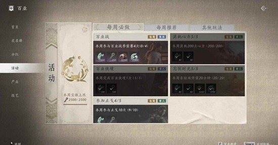 以上就是燕云十六声百业活跃值攻略,每周活跃值怎么速刷方法的全部内容了,更多游戏资讯,攻略内容敬请关注切游网,您的支持是我们努力的动力!