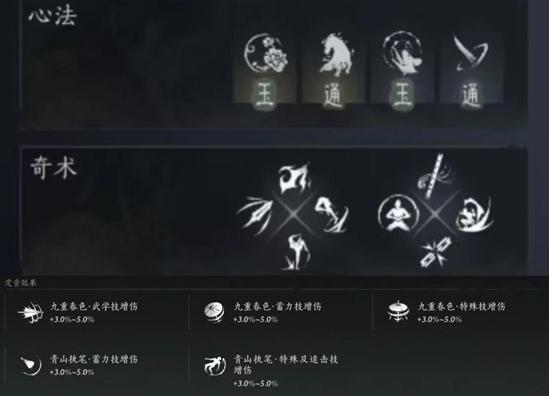 利用扇子能打断奇术后摇和施法期间中断的特性不断尝试破防技去尝试破防对手,挑飞后非特殊情况(没有抛春恨)不要接浮空三连收益很低,遇到粘住你的流派就选择打拳保持强韧找机会利用风墙拉开距离。在进攻的时候可以先平a骗对手卸势然后点穴(点穴不能卸)挑飞打大伤害连招。