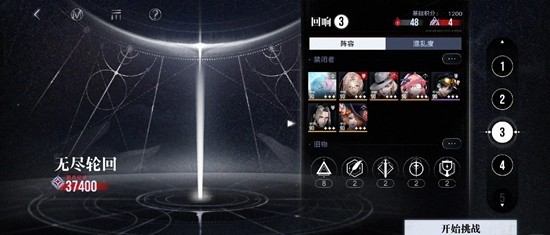 关卡不要选择最新的关卡,选择长夜微光,长夜微光是回合九关卡里相对地形好比较简单的,很容易过且不掉什么神智。