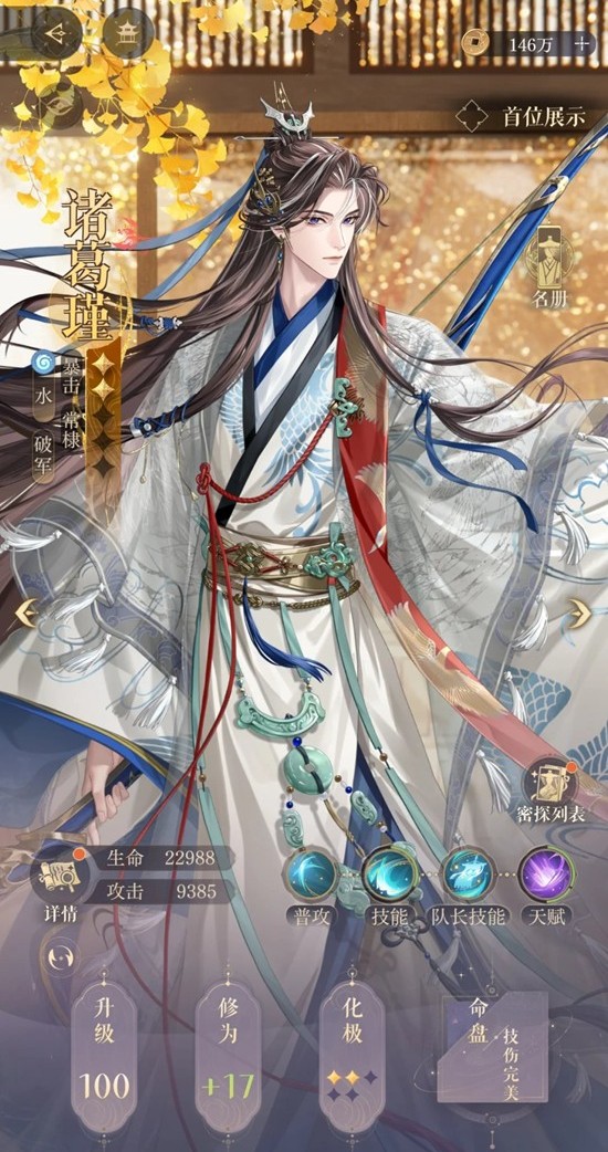 诸葛瑾:长棣寒霜,攻击中,9.3K攻击力