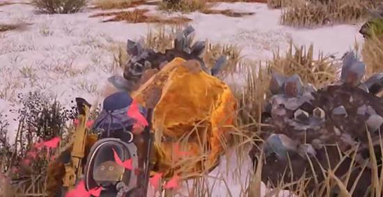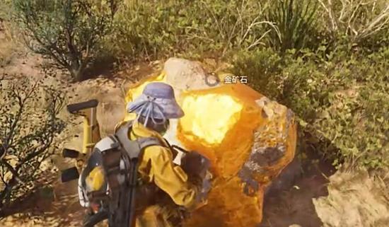 当接近地图边缘的白色区域时,沿着旁边的湖泊进行探索就能发现金矿。金矿的颜色十分明亮,在环境中很容易辨认,周围还分布着其他各类矿石资源。