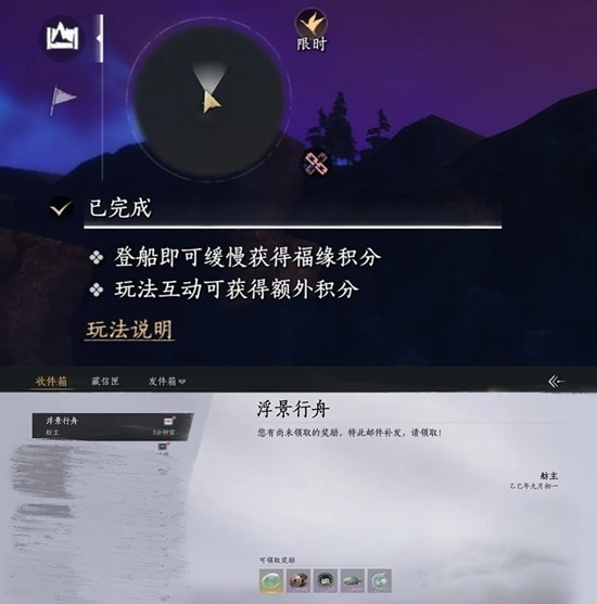 整点会有船佬“行船祈福”,上船后纯挂机大概半个多小时可以刷满,如果参加小游戏更快(速刷推荐钓鱼)。重点来了,满了之后不要领奖励,直接点开地图返回单人世界,奖励一段时间后会补发到邮件。(一周奖励上限是四封邮件)接下来要做的就是组队,进联机打开邮箱领邮件。