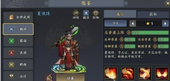 夏侯惇在三国志异闻录中是一位兼具输出与治疗能力的前排猛将。他的技能机制设计巧妙,能够对敌方单体及其左右目标造成范围伤害,并将部分伤害转化为自身或队伍中血量最低单位的治疗量。这一特性让他在持续作战中具备极强的生存能力。其主动技能可打出高额单体爆发,同时附带防御提升效果,增强抗压能力。被动技能则进一步强化了他的坦度,不仅提升状态抗性,还能在受到攻击时叠加刚烈效果,使敌人在进攻时需权衡代价。
