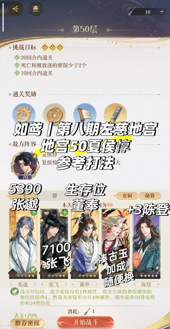 主要是读懂机制,每个人伤害不同,注意控制夏侯惇血量,打多了记得防御。