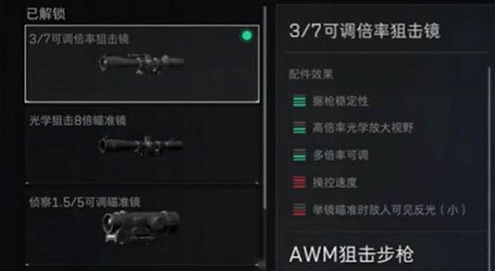 瞄准镜的选择直接关系到AWM的作战效能。2倍镜适合中距离交战,4倍镜和6倍镜是中远距离的经典选择。追求超远距离狙击的玩家可以考虑8倍镜,而全息或红点瞄准镜则能提升近距离作战的灵活性。