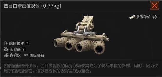 四倍夜视仪以其优秀的视场和清晰的视野,迅速成为特战单位的新宠。这款夜视仪采用了先进的白磷显像管技术,视野呈现独特的蓝色,为先锋们在夜间作战提供了极佳的视觉体验。四倍的放大倍率让先锋们能够清晰地观察到远处的敌人和环境细节,无论是潜伏在暗处的敌人还是远处的资源点,都能尽收眼底。在夜间行动中,四倍夜视仪将成为你发现敌人的关键道具。