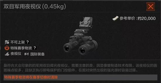 除了四倍夜视仪,S15赛季还将推出一款经典的军用双目微光夜视仪。这款夜视仪符合大众对军用夜视设备的想象,但在实际使用中也有一些局限性。由于显像管制造技术的限制,它的画面噪点较多,视野清晰度相对较低。