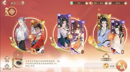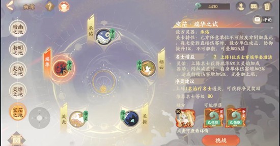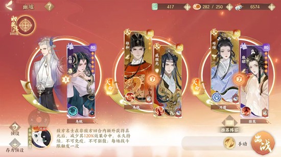 端华/承佑:不说了,持续伤害,端华一点暴强都不能有!(我甚至直接给班昭换了15级一点没洗的姑射)。承佑先杀秋,然后春(我怕控所以带了归藏兔狲,实际可以赌一下)