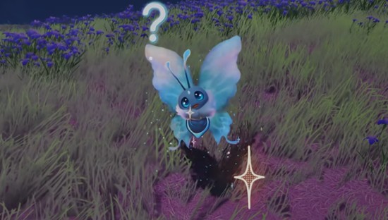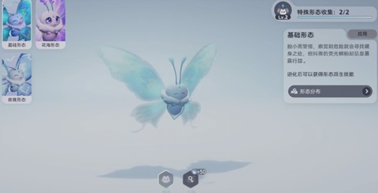 夜晚形态下的伊莫荧光蝶翅膀荧光由蓝转为淡蓝,移动时伴有闪烁的光影特效,整体氛围感十足。此形态需在游戏内时间设定为夜晚时才可遭遇,同样刷新于草原花海地带。与普通形态相比,夜晚形态不仅视觉上更具神秘感,还能解锁“夜晚的聚会”这一专属研究点,为后续培养提供额外方向。连接角色状态下进行探索是触发相关研究的关键条件。