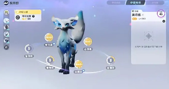 月光狐在战斗中的定位是输出型精灵,基础个体数值优秀,成长潜力高。完成相关任务“狐影之谜”后,月光狐可实现进化,攻击力提升50%,并解锁群体技能月华冲击。该技能在清理小怪时效率显著,具备良好的清场能力。满级后的月光狐单体爆发极高,最高伤害可突破3000点,对残血boss也有出色的收割能力,适合在战斗中承担主要输出职责。