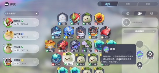 走调草作为前期易获取且成长性良好的宠物,在伊莫阵容推荐中也占有一席之地。它具备每隔15秒触发一次威慑的能力,命中目标后使其进入虚弱状态,期间对我方造成的伤害降低15%,效果持续20秒。若其拥有稀有特性,还能进一步削减敌方防御与输出。其技能亢奋魔音以扇形区域造成伤害,并为自身恢复两点能量,技能冷却时间为15秒,正好形成稳定的能量循环,既能辅助控场,又能维持自身运转,适合长期驻留主力阵容。