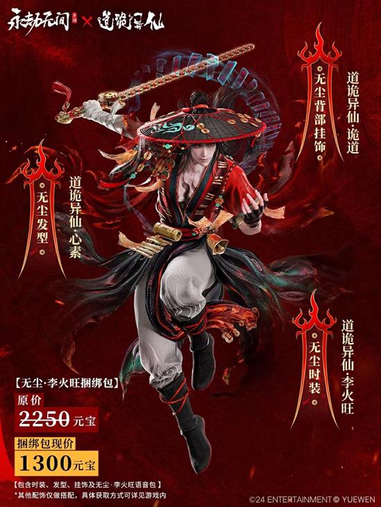 包含:无尘极品时装【道诡异仙·李火旺】、发型【道诡异仙·心素】、挂饰【道诡异仙·诡道】、语音包【无尘·李火旺语音包】