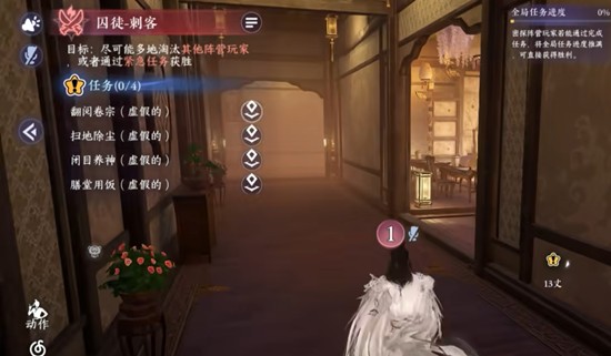 游戏流程分为自由活动与会议两个阶段。在自由活动阶段,所有玩家可在地图内自由移动,密探需要完成系统发布的任务来推进胜利进度,而这些任务仅对密探真实有效。囚徒和疑犯虽能看到任务界面,但其任务为虚假内容,他们的核心目标是干扰密探的任务进程,同时利用淘汰机制清除对手。拥有淘汰能力的角色在使用技能后需进入冷却,无法连续行动,这为其他玩家提供了反应与逃脱的时间窗口。