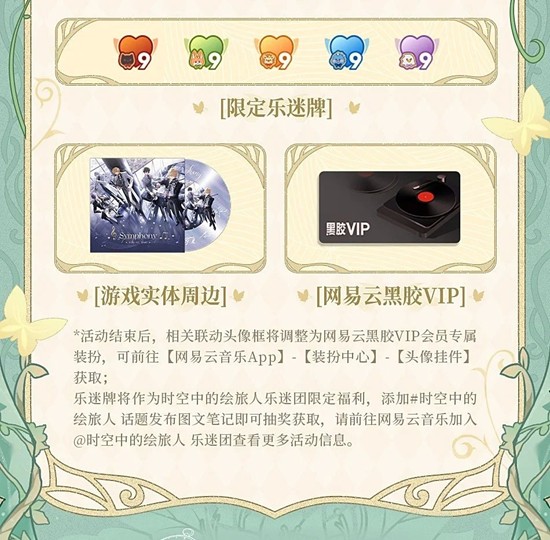 乐迷牌将作为时空中的绘旅人乐迷团限定福利,添加#时空中的绘旅人话题发布图文笔记即可抽奖获取,请前往网易云音乐加入@时空中的绘旅人乐迷团查看更多活动信息。