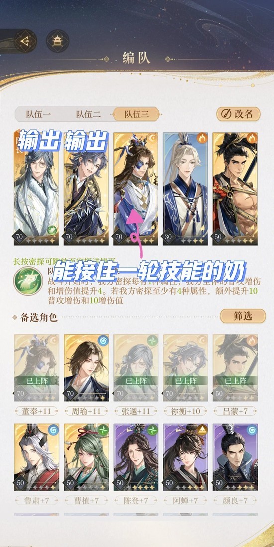 我的配置是70+11张邈祢衡董奉,带周群和吕蒙