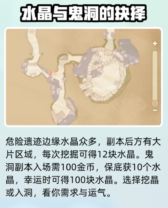 在波西亚时光中,水晶的主要采集区域集中在城外的矿洞与荒野地带。位于城市西北方向的废弃矿井是最早可进入的采集点之一,洞内多处石壁上嵌有发光的水晶簇,使用镐类工具即可采集。这些水晶以低级为主,适合前期补充材料需求。随着玩家等级提升,解锁更深层矿区后,可获得品质更高的水晶资源。