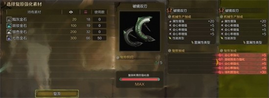 完成基础制作后,玩家可对机械武器进行五次强化,每次强化都会随机生成一个词条,最多可累积五个有效词条。经过多次强化后的机械武器在属性表现上通常优于普通素材武器,除非运气极差导致词条偏离核心需求。因此建议保留多个强化分支以供筛选最优组合。