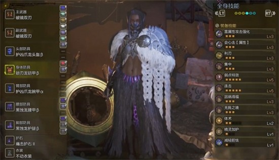 毕业阶段推荐使用两件凶爪龙与两件黑蚀龙的混搭套装。凶爪龙提供连击强化,黑蚀龙则赋予狂龙病状态抗性及克服后的会心率加成。配合一级孔位中的无我之境与抗狂珠,可在克服狂龙后稳定获得10点会心值,极大增强爆发输出能力。
