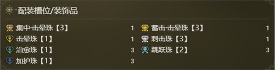 装备的珠子搭配在怪物猎人荒野大锤吸血保活流中至关重要。武器部位镶嵌集中·击晕珠【3】、蓄击·击晕珠【3】和击晕珠【1】,可大幅提升击晕效率并延长怪物硬直时间,增加有效输出窗口。头部、腰部与脚部均配置治愈珠【1】,三处共提供3点治愈加成,结合游戏内吸血类机制可提升实际回血量,确保在连续挥锤过程中维持血线稳定。