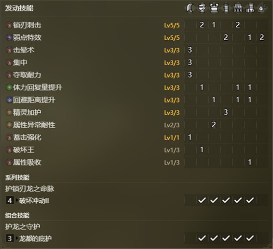 通过上述装备与珠子组合,最终可激活痛击技能(由痛击护石II提供),该技能能显著提升对怪物部位的打击效率,并间接增强吸血触发频率。配合护锁刃龙套装自带的抗性加成与防御力提升,整套配装在怪物猎人荒野中实现了输出、控制与生存的三重平衡。击晕、集中与跳跃技能的协同作用,使大锤玩家能在重武器笨重的表象下打出流畅压制节奏。