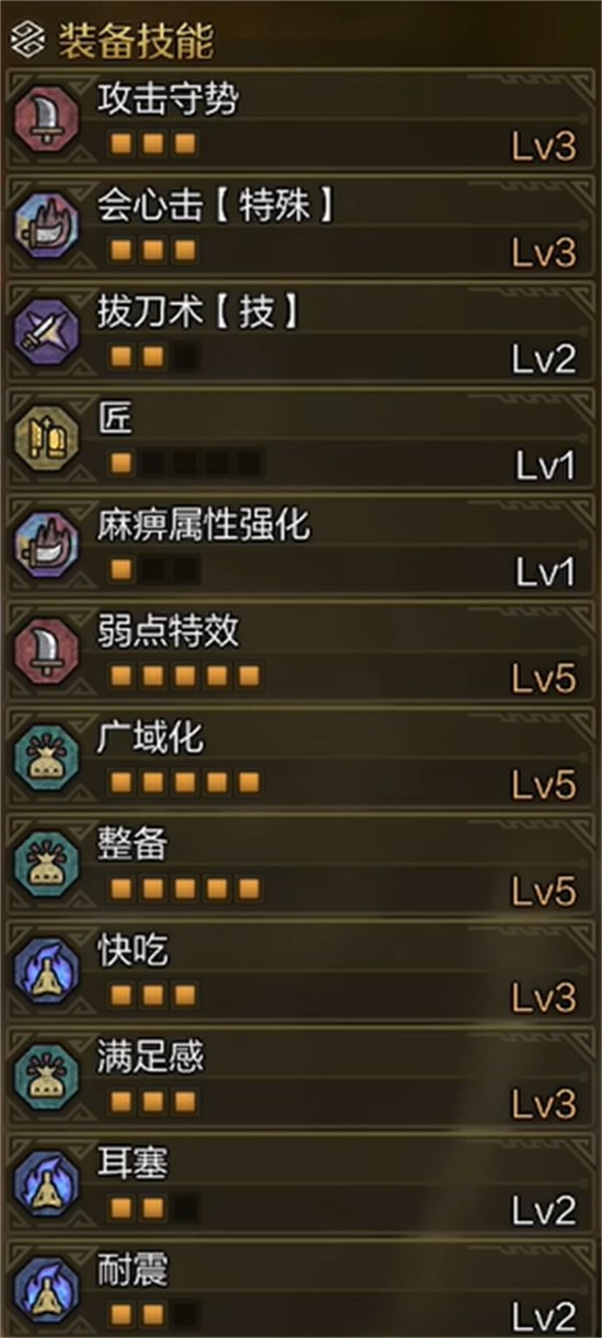 臂部装备采用护锁刃龙腕甲β,三颗快吃珠的配置是本套配装的关键所在。在怪物猎人荒野中,快速食用料理是维持状态的核心手段,三颗快吃珠叠加后可大幅缩短进食动作时间。这一特性使得角色能在战斗间隙迅速恢复生命值或激活增益buff,极大增强战场适应力。