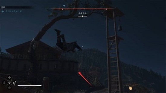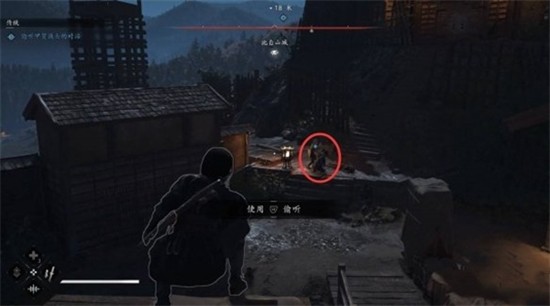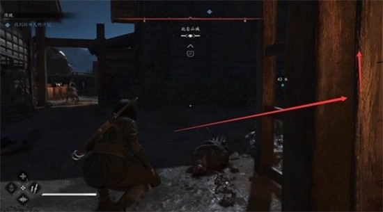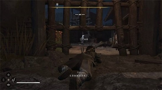 随后,使用钩绳工具攀爬至右侧高台,从那里可以顺利进入敌方营地。这一段考验玩家对移动机制的掌握程度,尤其是在高低差较大的地形中灵活运用钩绳与潜行技巧。成功抵达营地后,注意观察周围建筑布局。