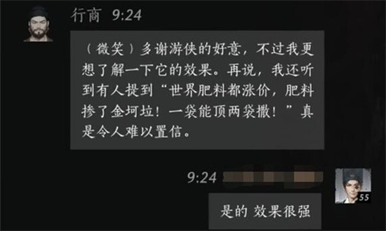 随后玩家需接上“是的 效果很强。”此句用于回应行商可能提出的商品效果疑问,简短有力地确认商品价值。在燕云十六声的对话系统中,这类肯定式回答常用于加快交易节奏,避免陷入冗长谈判。