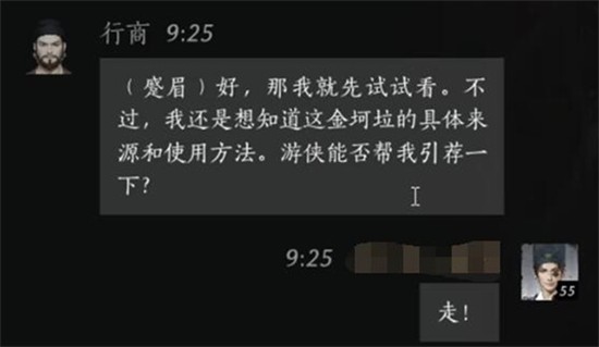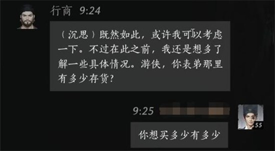 接下来的回应是“非常可靠,是我表弟在卖,你想买多少都行,给你个朋友价。”该句进一步强化交易可信度,并引入“表弟”这一虚构角色来增加对话的真实感。这是燕云十六声中设计对话逻辑的一部分,通过人情关系推动情节发展。