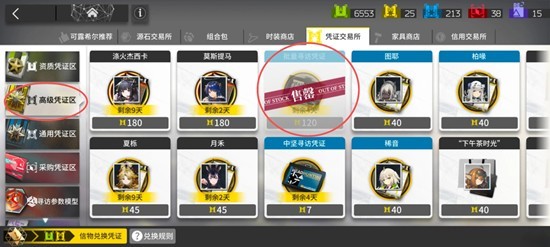高级凭证区(黄票商店):有规律的上架六星角色,180黄票即可兑换,可以关注喜欢的角色大致上架排期,做好规划。