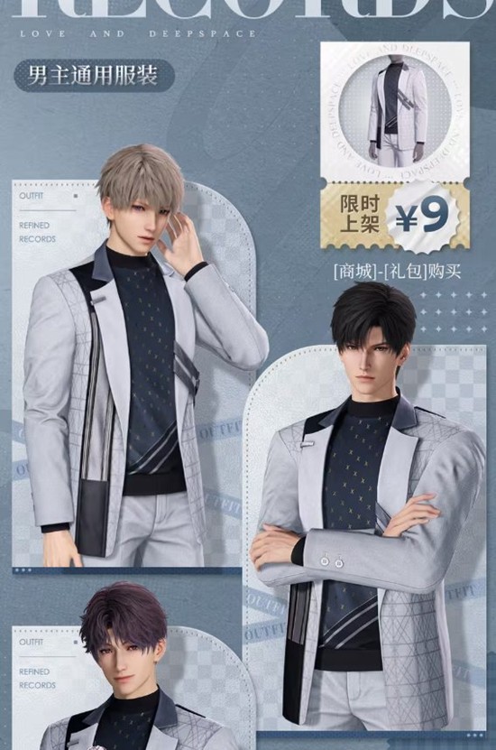 本次新品上架包括男主通用日常服饰套装「束心显影」,随服装赠送男主通用面饰「飞扬弧度」,服装与饰品均可拆分搭配,为玩家提供更多个性化选择。还有男主通用日常服装「雅意唱片」,以及“我”的日常服饰套装「心动漫游」,后者附赠“我”的帽子「闲适微风」及耳饰「浅心语」,同样支持服装与饰品的自由搭配。