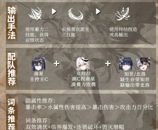 装备词条的选择应优先考虑属性的实际收益。副属性推荐顺序为暴击率、水属性伤害提高、暴击伤害、攻击力百分比。由于南星的技能体系以水属性为核心,水伤加成可直接提升所有技能伤害。暴击率建议优先堆至50%以上,确保输出稳定性,减少未暴击带来的伤害波动。在此基础上提升暴击伤害,进一步拉高暴击时的输出上限,最后通过攻击力百分比补足基础伤害,实现属性利用率最大化。