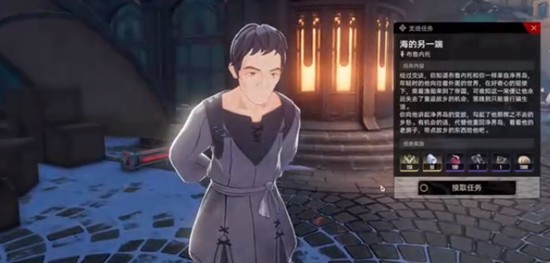 钥匙实际上在接取任务时就已经自动放入背包的任务道具栏中。玩家无需额外寻找或破解机关,只需打开背包找到“海之另一端的钥匙”并使用即可开启宝箱。箱内包含任务所需的关键物品,同时附带500金币和10个初级体力药水作为额外奖励。这些资源对于中期角色成长有一定帮助,属于任务中的固定掉落内容。