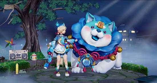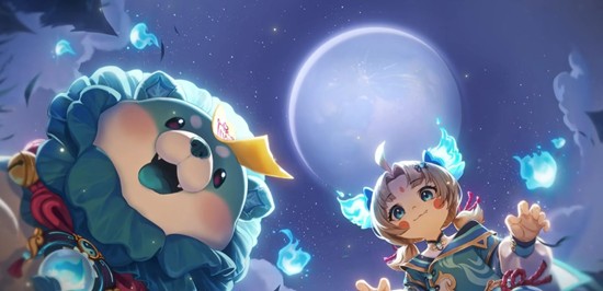 阿古朵·夜趣星史诗皮肤以惊奇夜游园会为主题,整体色调以灵动的蓝白色为主,巧妙地融入了彼岸红绳与金色铜铃等元素,营造出一种奇妙搞怪的灵异氛围,同时又不失鲜活可爱的国风韵味。阿古朵头顶浅金色短发,搭配红绳和跃动的灵火造型狗耳发饰,显得灵动俏皮。