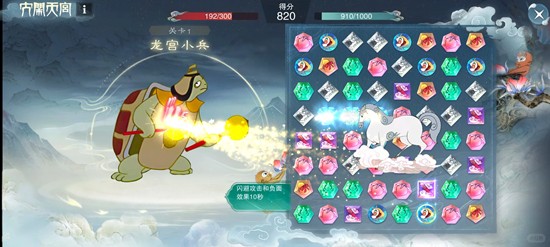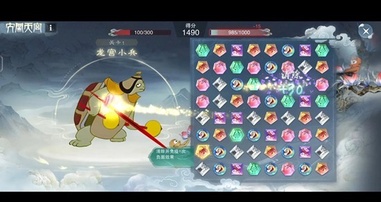 我的心得是:前期稳扎稳打,优先连消“蟠桃”和“金丹”保证状态。遇到像巨灵神(锤击会眩晕)和哪吒(火尖枪造成持续灼烧)这种技能烦人的,可以用“八卦炉”困住他们,为自己争取输出时间。最要小心的是二郎神,他会开天眼让我们的技能暂时失效,看到他准备放技能,赶紧用“天马”闪避躲过风头再说。