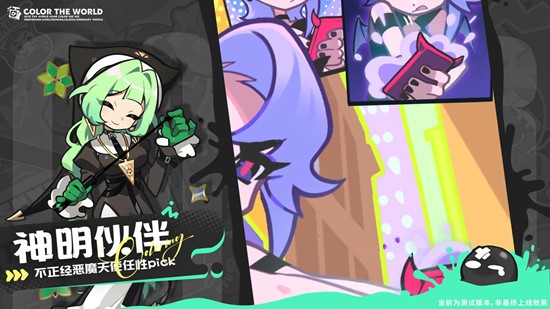 新增的PVP策略对战【喷溅对决】,为玩家提供了一个展示自己策略和创意的平台。在这里,玩家需要排兵布阵,指挥神明娘进行激情染色对喷。每一次的对决都是智慧与创意的较量,玩家需要巧妙地利用地形和角色特性,才能在对决中取得胜利。