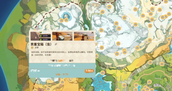 虫系宝箱位于信仰者村落东北方向的木架上,需注意观察上方结构,不要仅关注地面。开启时必须使用虫系精灵进行激活,奖励为虫系灵碎和无花果。虫系灵碎可用于化蝶等虫属性精灵的进阶培养,配合无花果可维持宠物状态,适合正在组建虫系队伍的玩家优先获取。