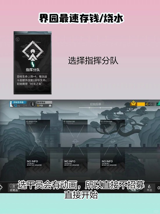 明日方舟游戏中,供玩家差遣的可操控角色“干员”,这些角色被分为了先锋、近卫、重装、狙击、特种、医疗、术师、辅助共计八个职业,那么界园玩法中如何快速完成存钱和烧水呢?小编为你准备了一份攻略,一起来看看吧~