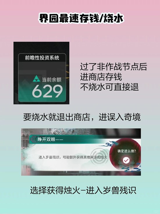以上就是明日方舟岁的界园志异攻略,最快速存钱及烧水教程的全部内容了,更多游戏资讯,攻略内容敬请关注切游网,您的支持是我们努力的动力!