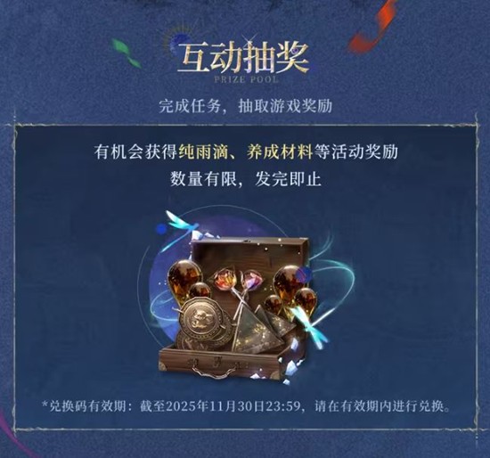 需要注意的是,兑换码的有效期截至2025年11月30日23:59,请玩家在有效期内进行兑换,以免错过奖励。