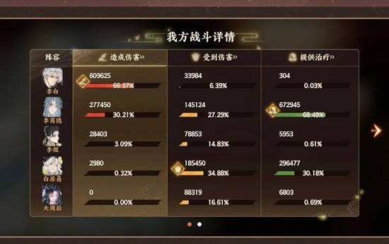 打的时候基本是河图阵,李白 白居易 杜甫 元稹 李商隐 杨玉环 这6个经常互换位置凑天命,李白伤害不太够,经常需要大周后带着他多动几下。