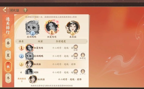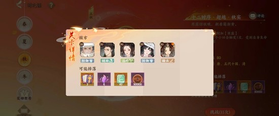 在忘川之中,有一群“四季之灵”,它们可以创造四季景象,时之涯,这里有4个季节,每天最多可以挑战6次。在挑战不同的季节时,必须要带特定的朝代名士才可以,那么时之涯秋12应该怎么配队呢?小编为你准备了一份攻略,一起来看看吧~