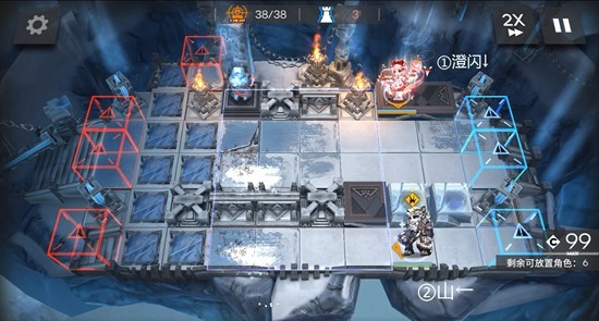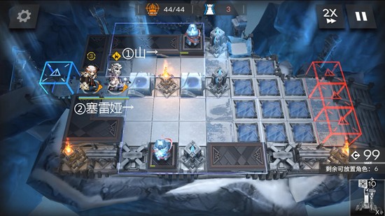 图中①②③数字为摆放干员的顺序。→←↑↓箭头为干员朝向。