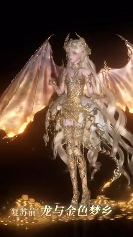 在最新发布的实机效果演示视频中,套装“龙与金色梦乡”的独特魅力得到了完美展现。从00:05开始,玩家可以看到套装的两种截然不同的形态: